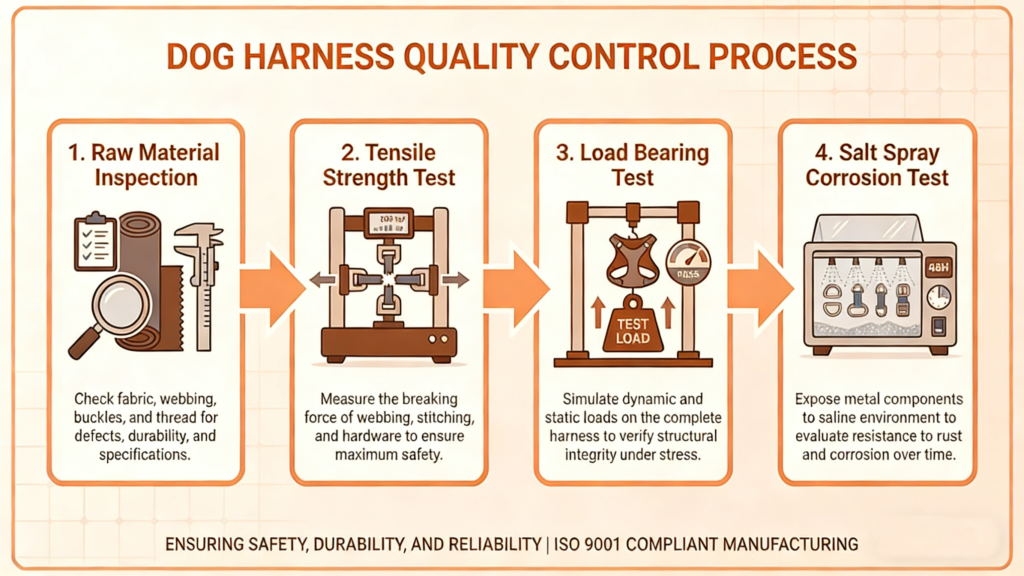 As a professional dog harness manufacturer, we implement structured testing procedures to ensure every OEM order meets international performance standards.
